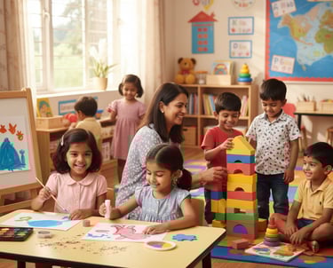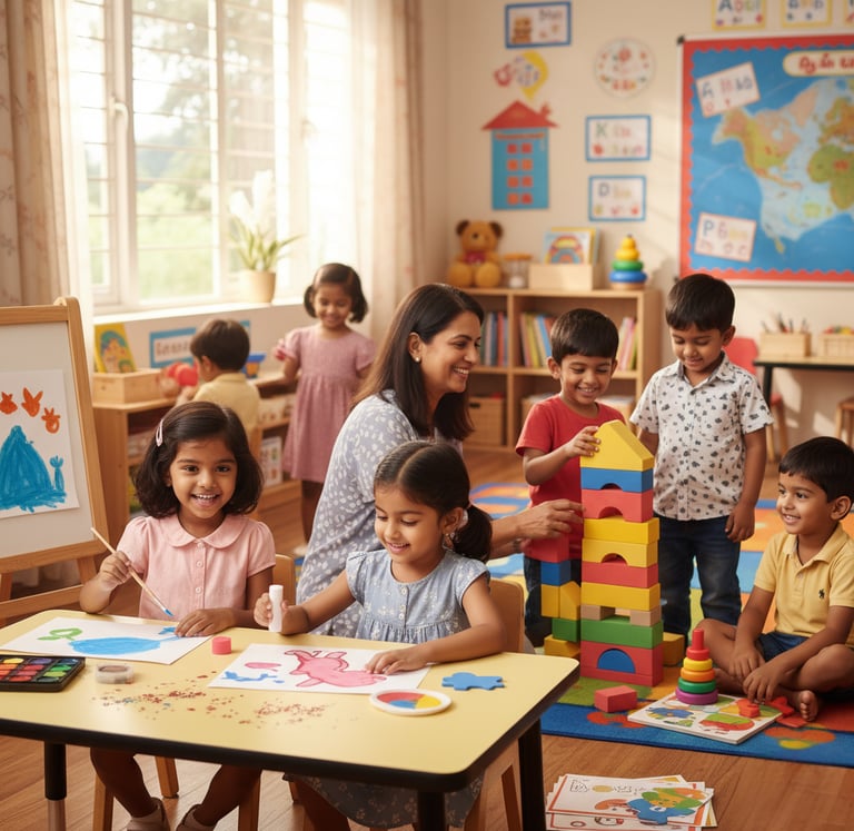 We follow an early years model that blends structured learning with purposeful play. Activities are hands on. interactive. and development focused. Every session is planned to strengthen early literacy. numeracy. motor skills. and social awareness. The approach is NEP aligned. ensuring age appropriate learning experiences that feel natural rather than forced.